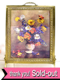 花瓶に生けられた華やかなお花たちがオイルペインティングで描かれています。