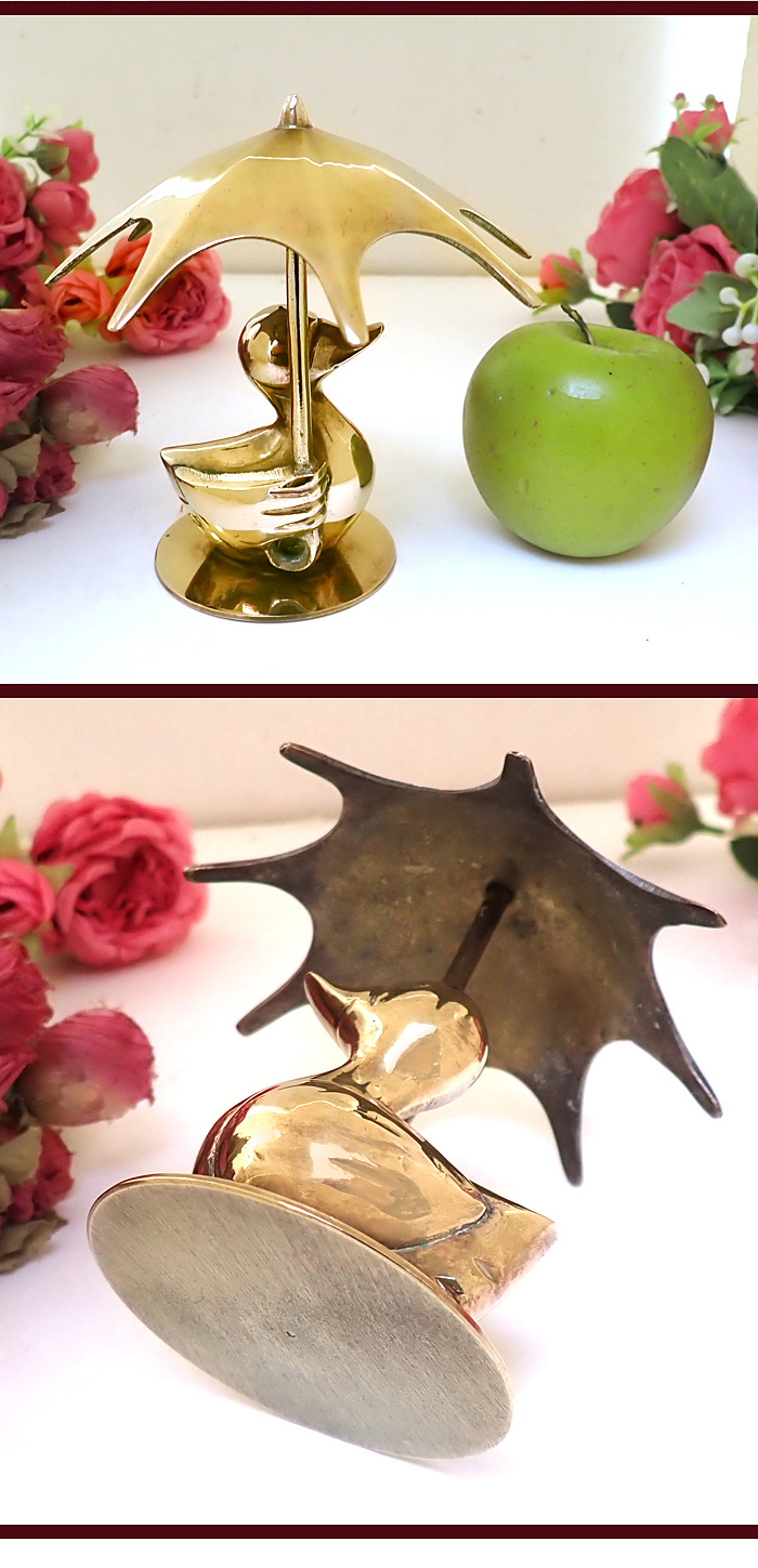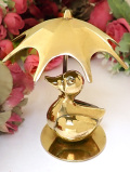 全体がしっかりとした真鍮細工で、全体が金色に輝くアヒルさんになっています。