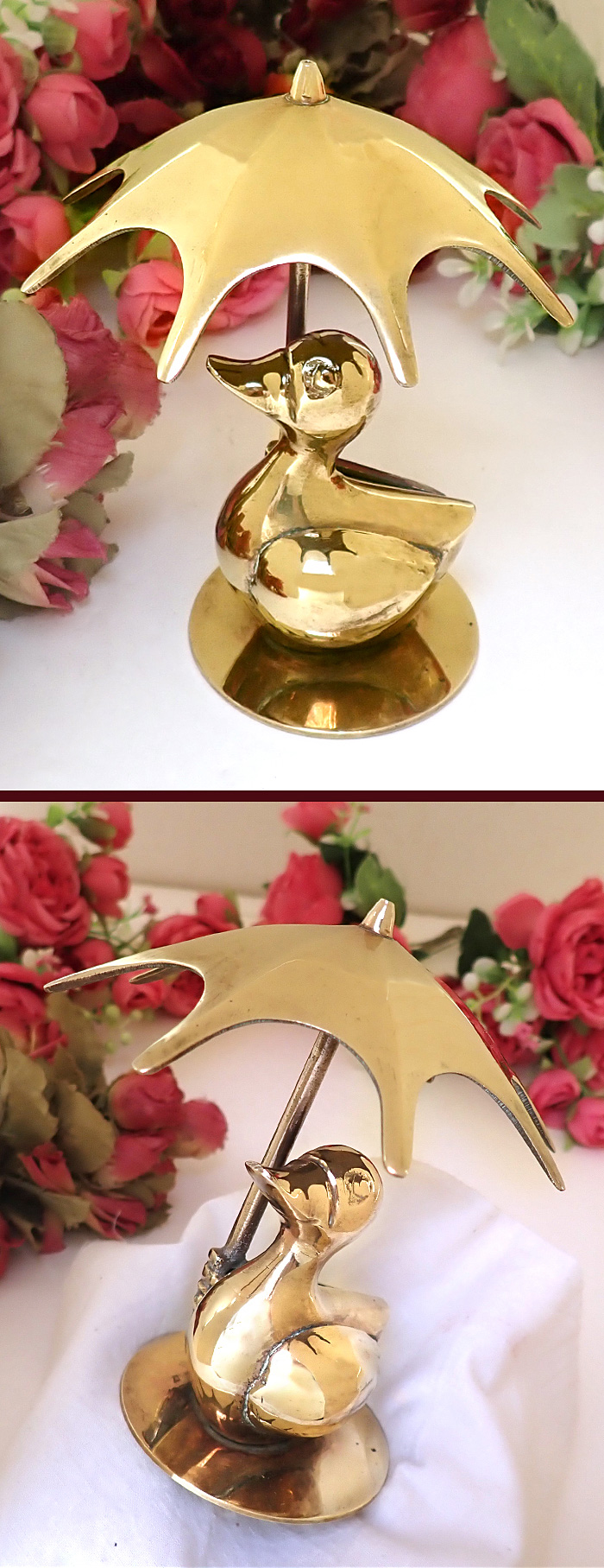 真鍮細工が素晴らしい、英国アンティークのアヒルさんだと思います。