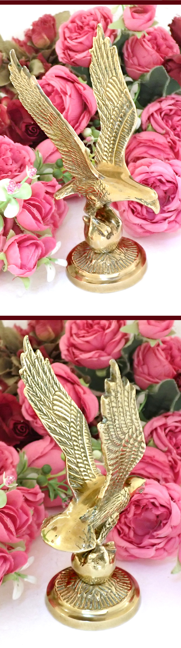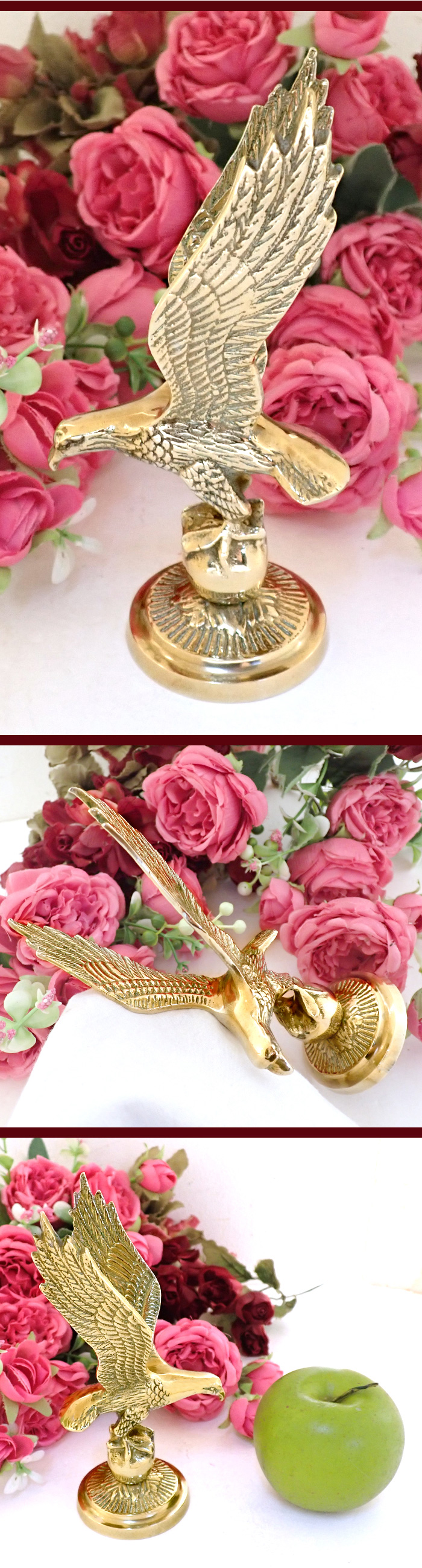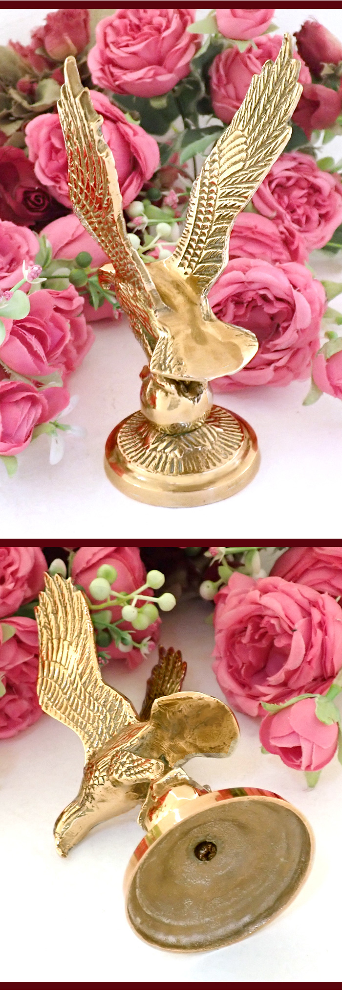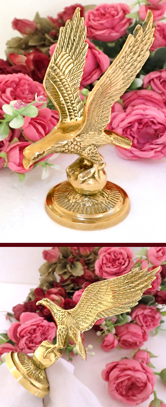 全体がしっかりとした真鍮細工で、全体が金色に輝く美しい鷲さんになっています。