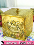 ボディには優雅な2羽の白鳥と川の風景が立体的な真鍮細工で描かれています。
