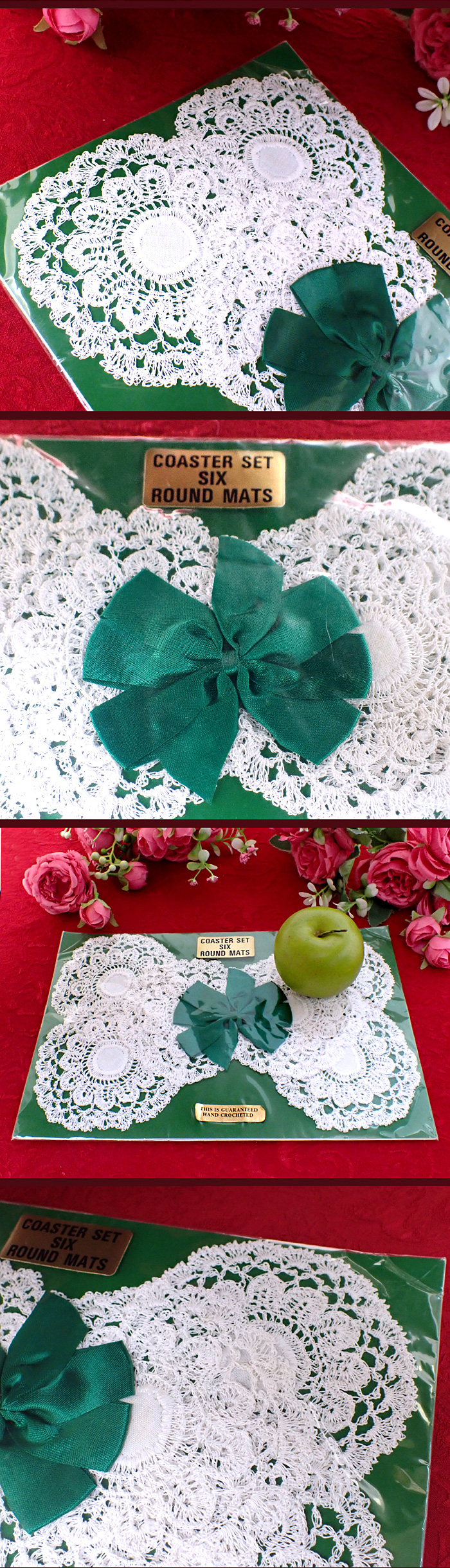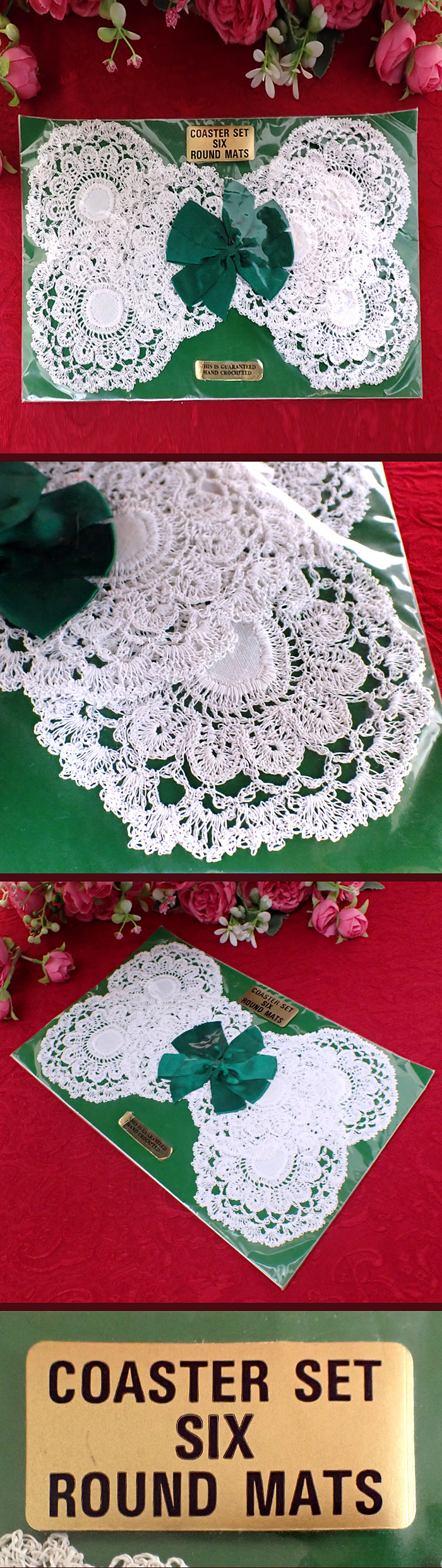 英国ハンドメイドの、レースのお花のようなコースターセットさんに出会いました♪