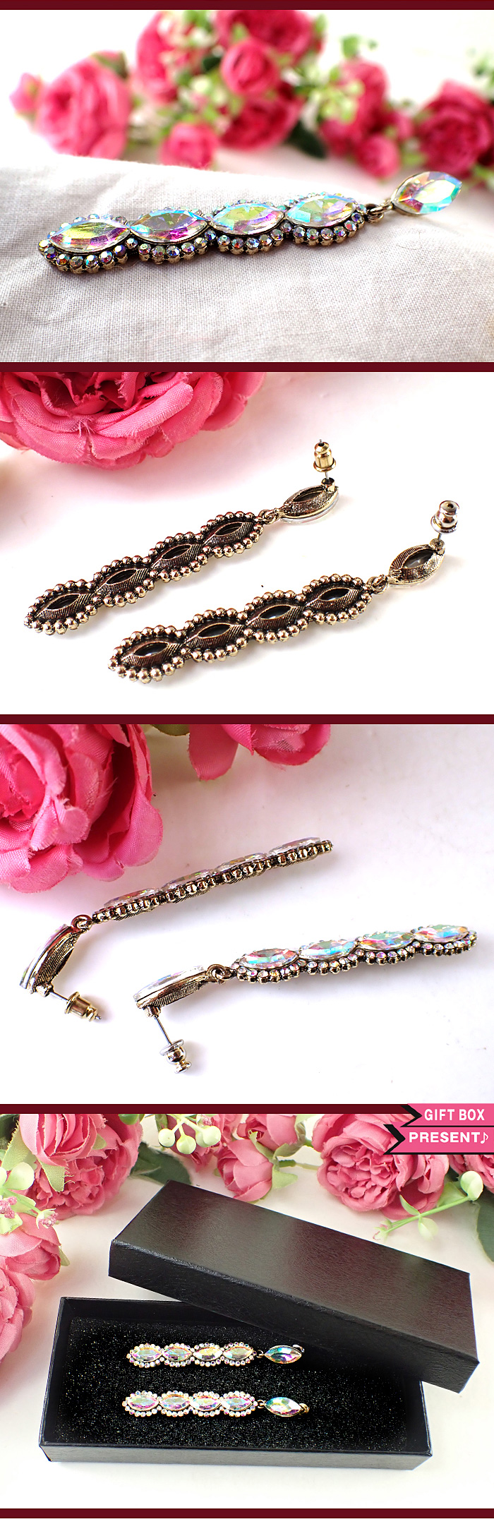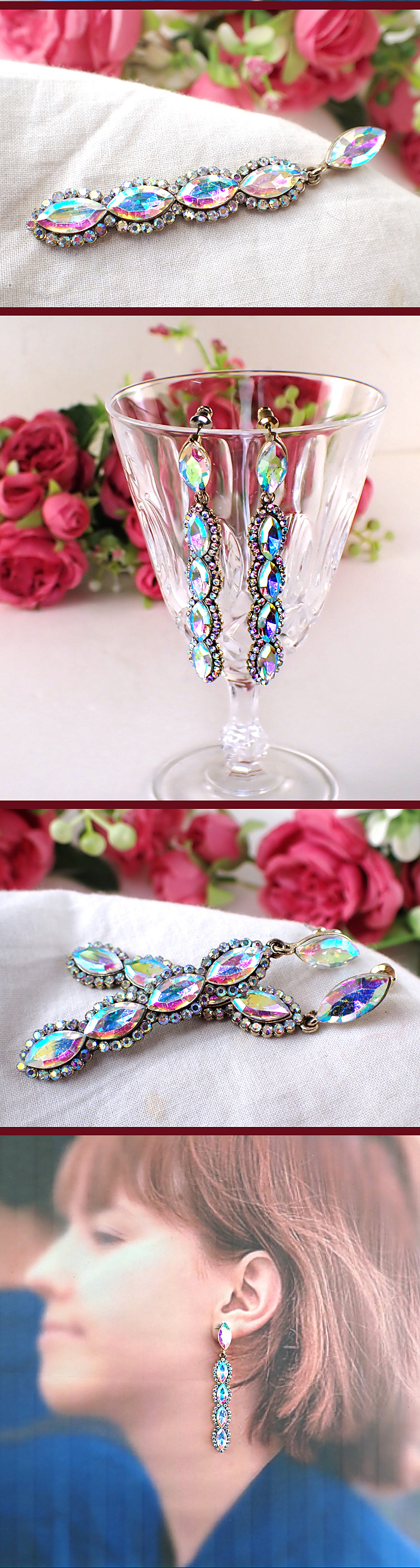 マーキスカットの大粒クリスタルが5連が縦に連なって輝いています。
