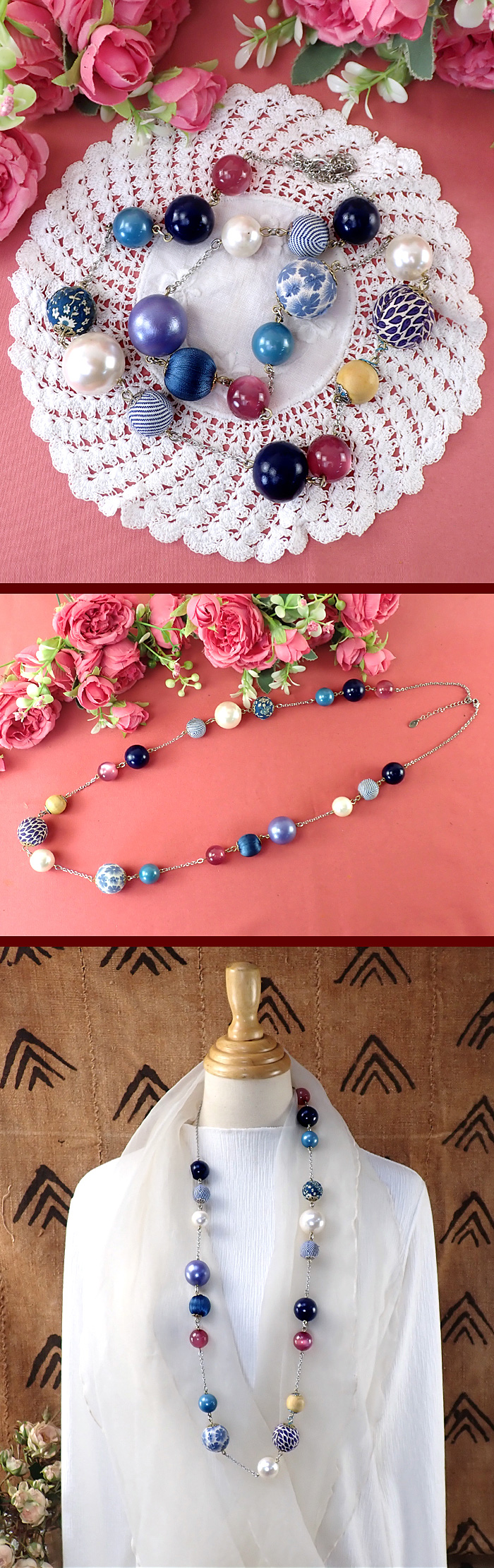 コラボレーションが楽しいウキウキのロングネックレスです(*^^*)/