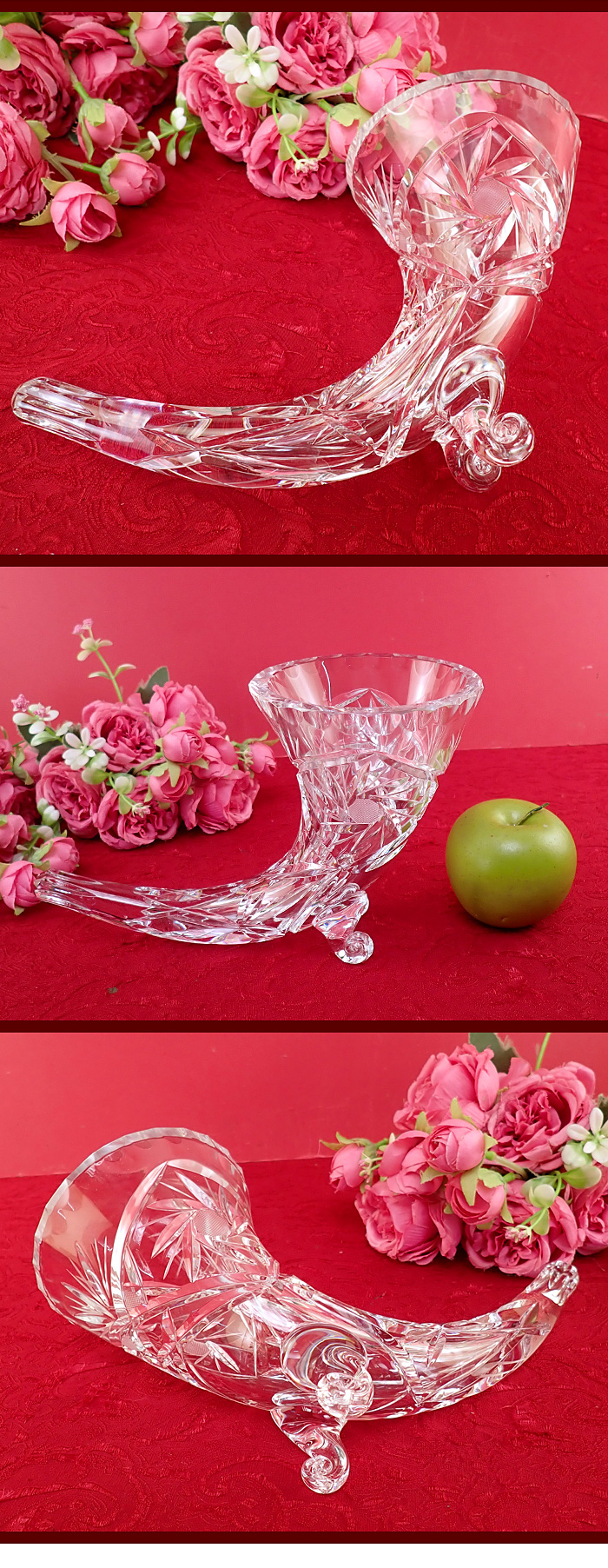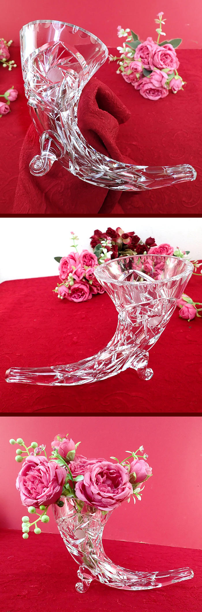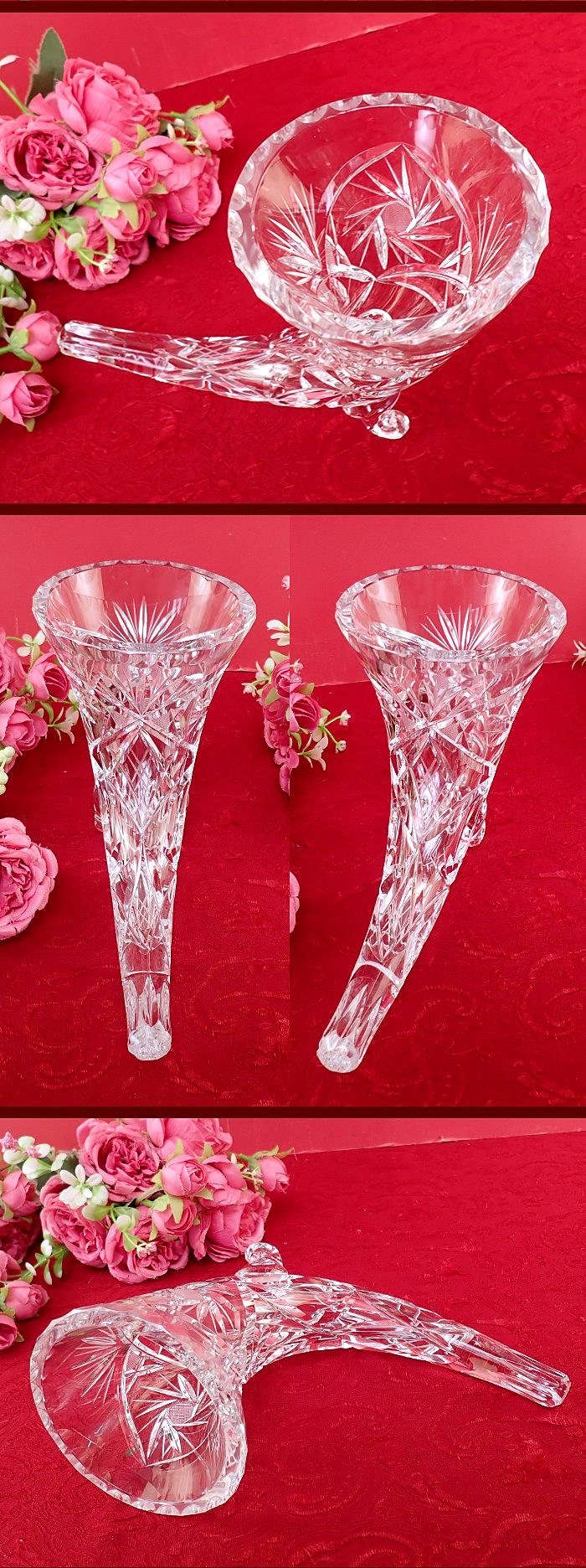 全体がガラスの楽器のような形になっていて、そのままフラワーベースになるのです。
