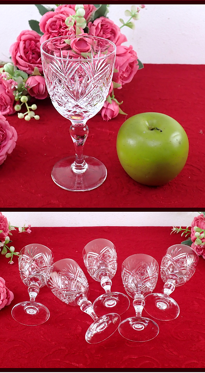 美品のクリスタルガラスのワイングラス:5個セットになります。