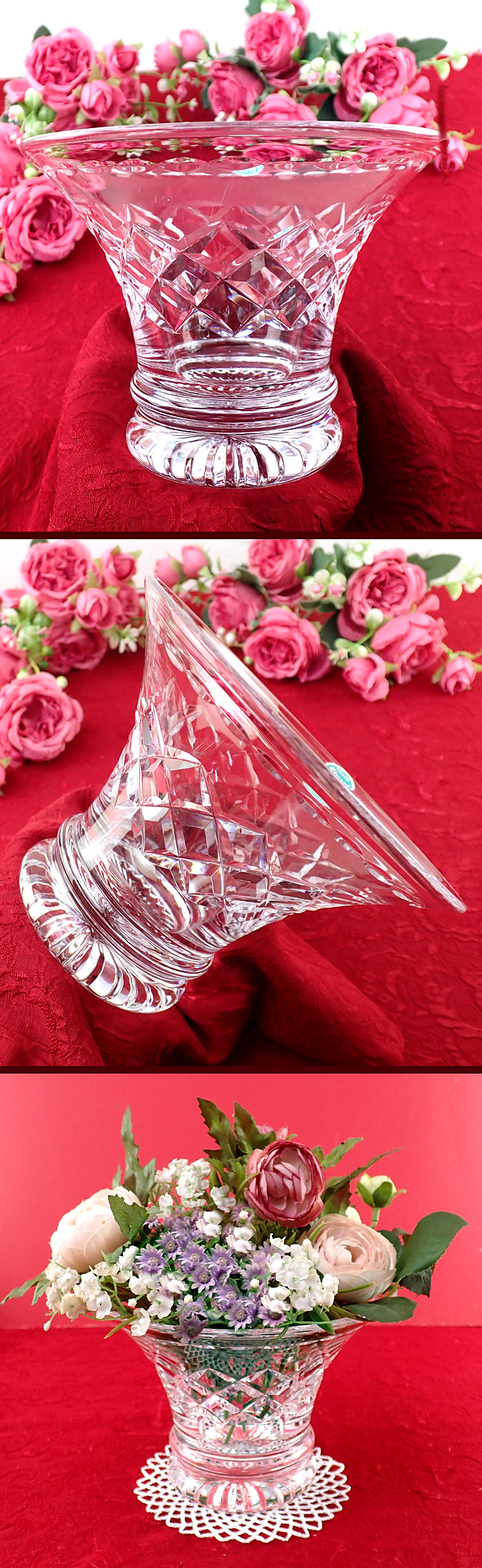 クリスタルガラスの大きなフラワーベースです。
