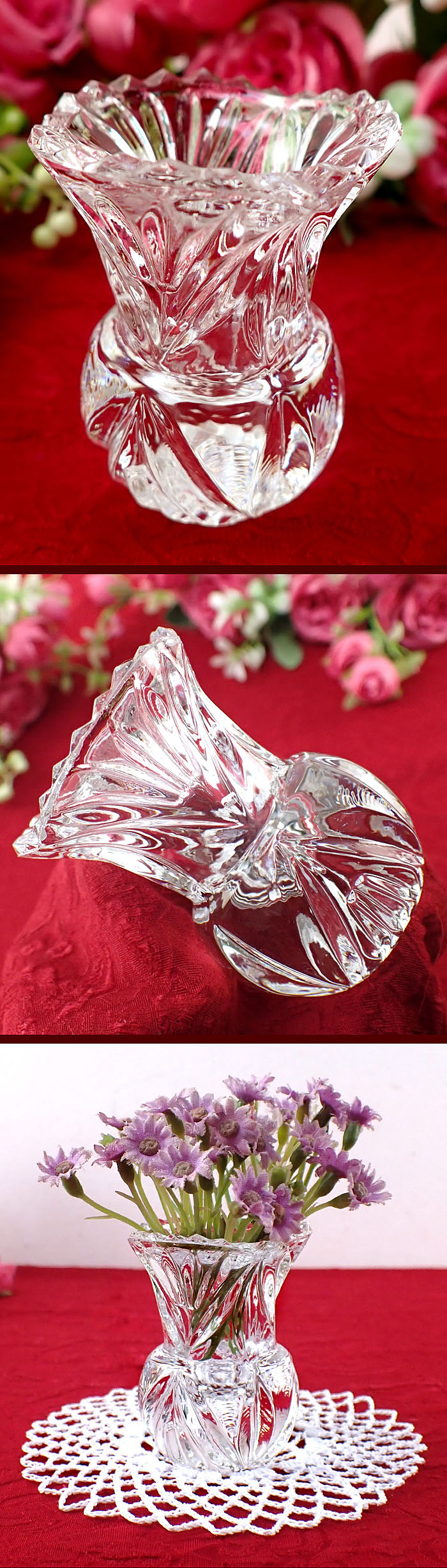 クリスタルガラスのスモールサイズのフラワーベースです。