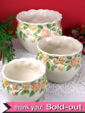 ぽったりとしたやさしい陶器でできた、大中小の英国アンティークの3つの鉢のセットと出会いました♪