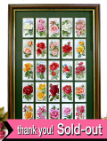 緑色の厚紙のマットの中には、25種類の薔薇のお花たちの絵がきれいに並べられています。