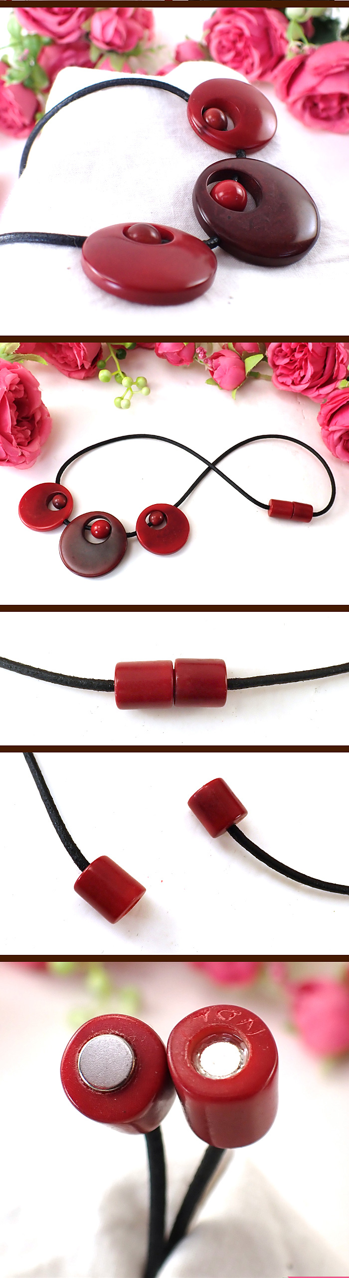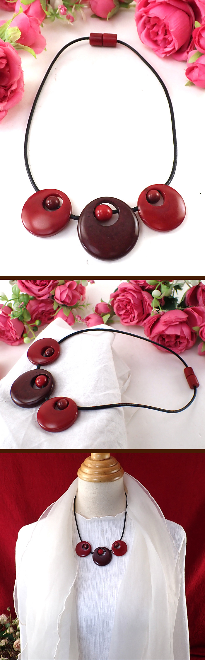 全長は47cmのネックレスで、モチーフの赤の濃淡のレジンたちがきれいです♪