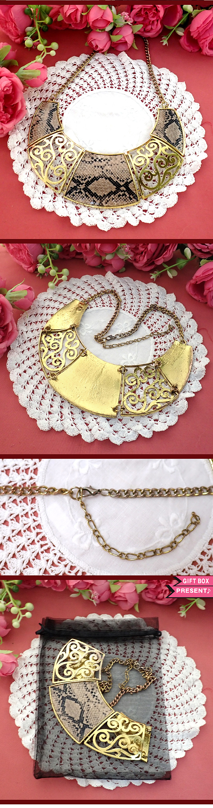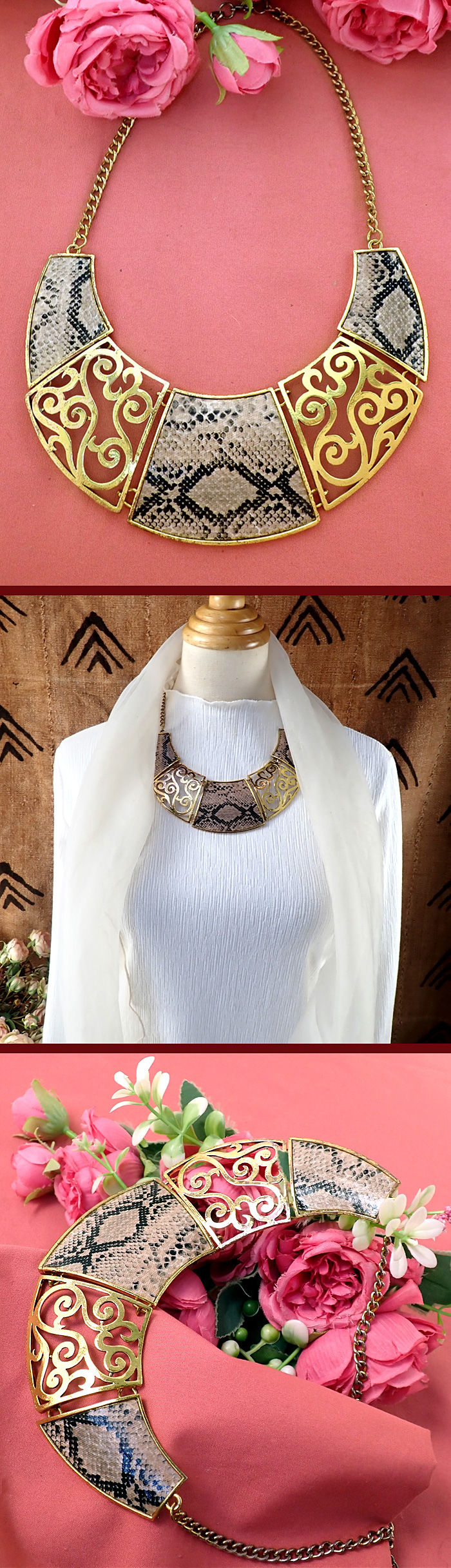 全体が無垢の真鍮で、その上にパイソン柄の大きなモチーフが素敵です。