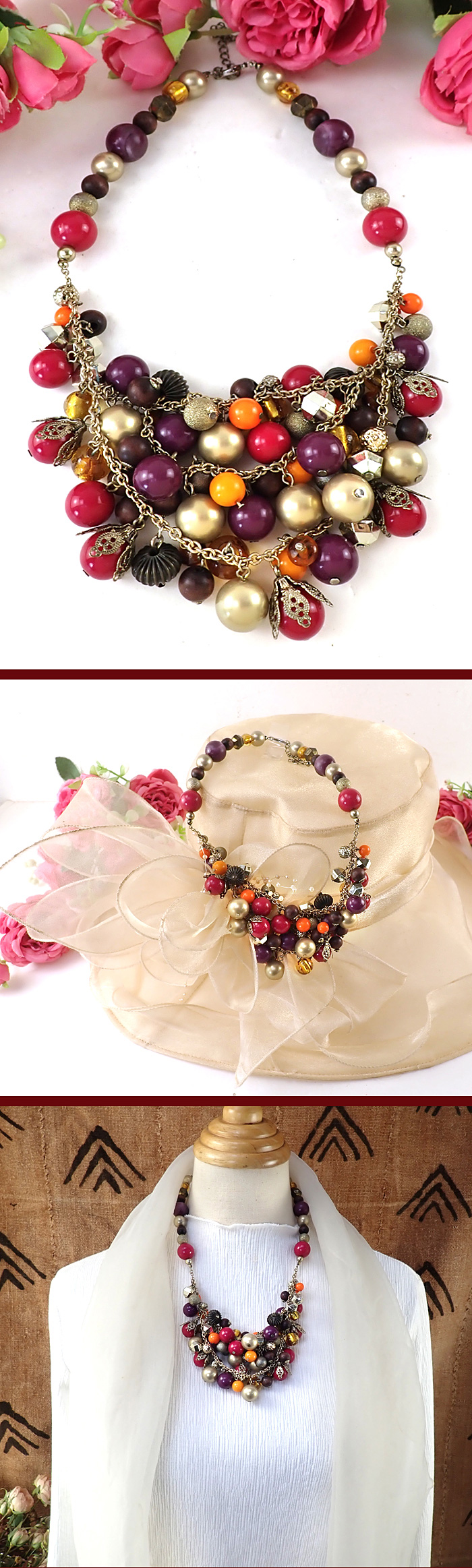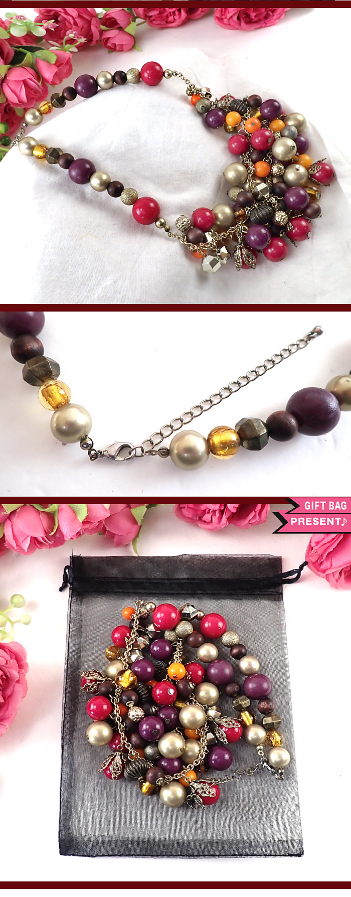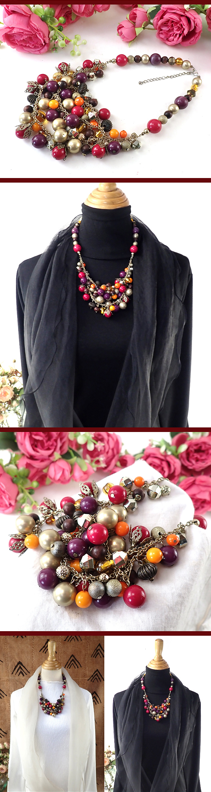 全長は50cmもあるロングネックレスで、シックなお色の球体たちがきれいです♪