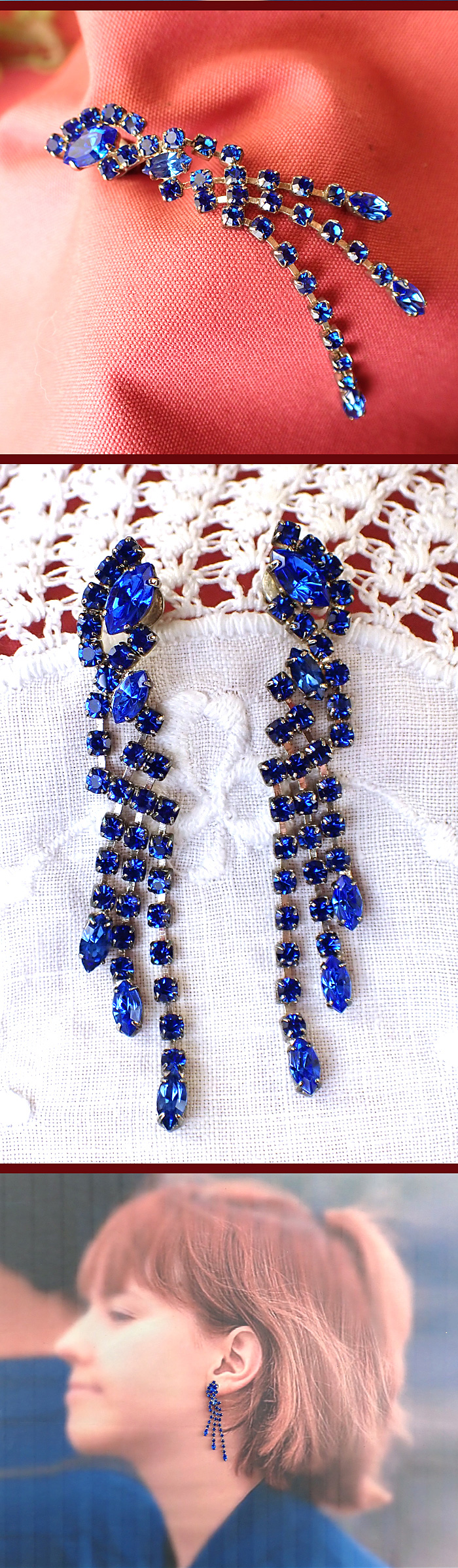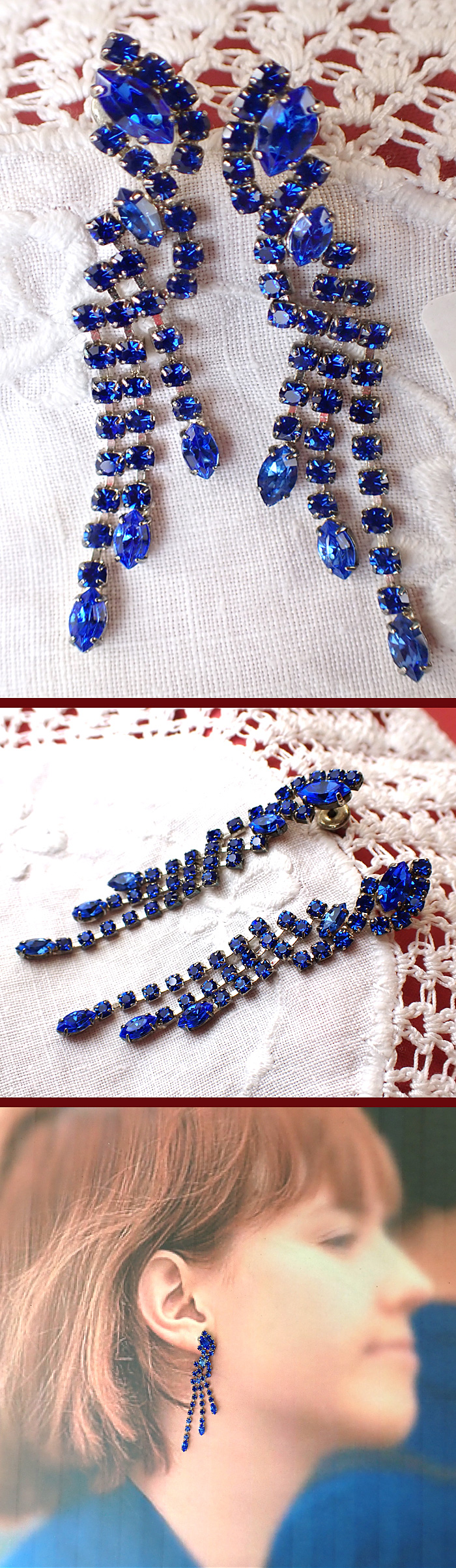 青い輝きのクリスタルが3本の揺れるフリンジになっていて、体の動きに合わせて、