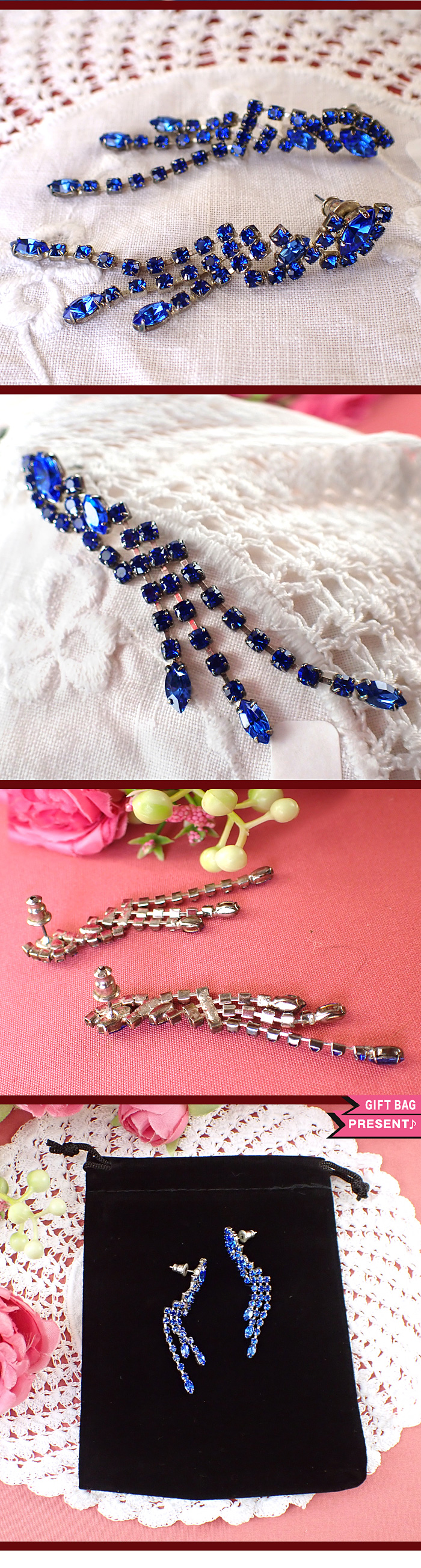 光り輝くブルークリスタルが揺れる優雅なピアスに出会いました♪