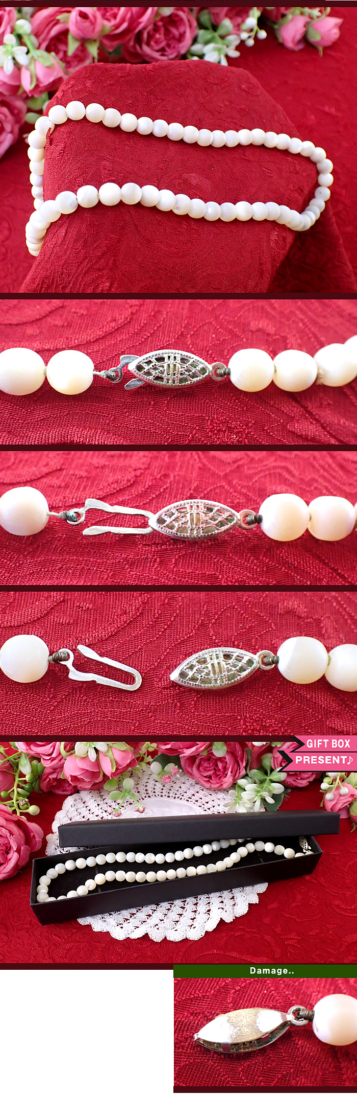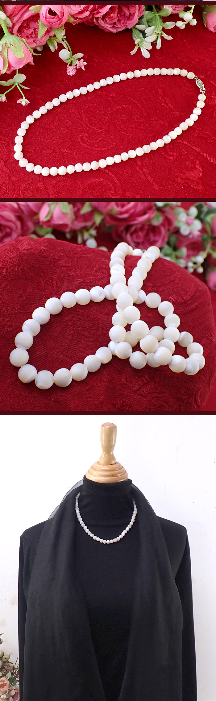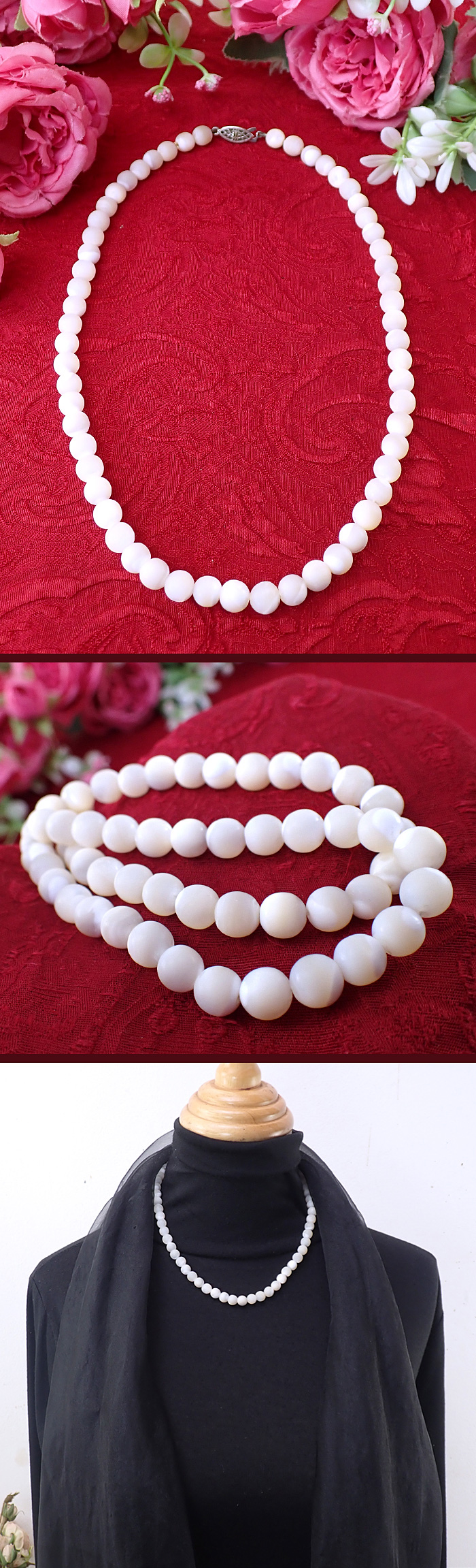 直径0.8cmもある大粒のマザーオブパールが58個も連なっていて豪華ですね。