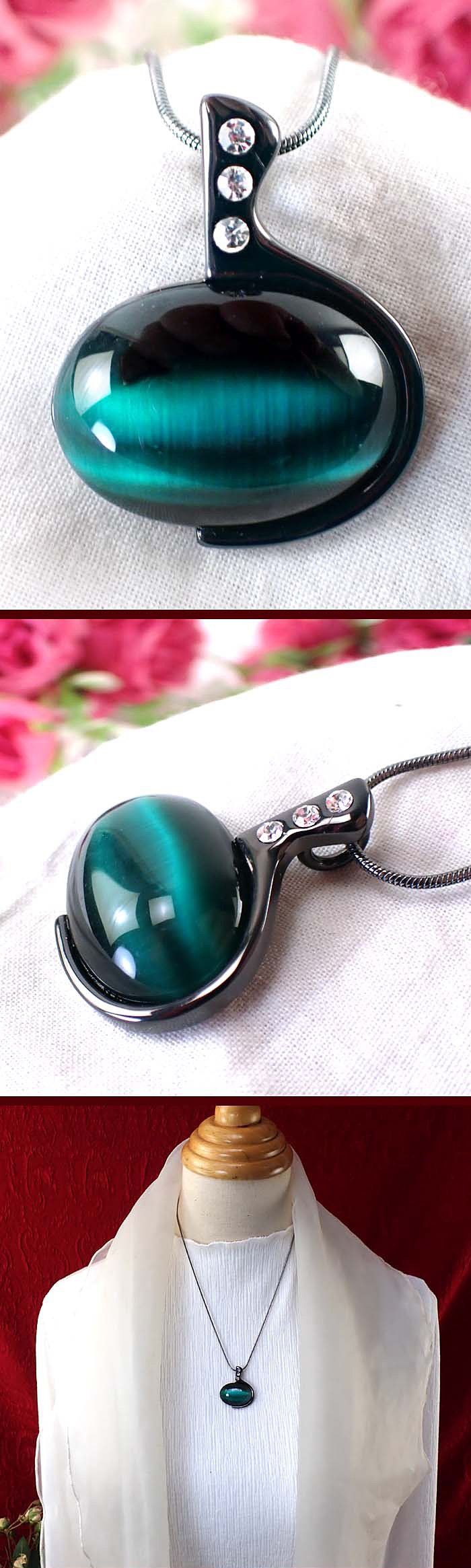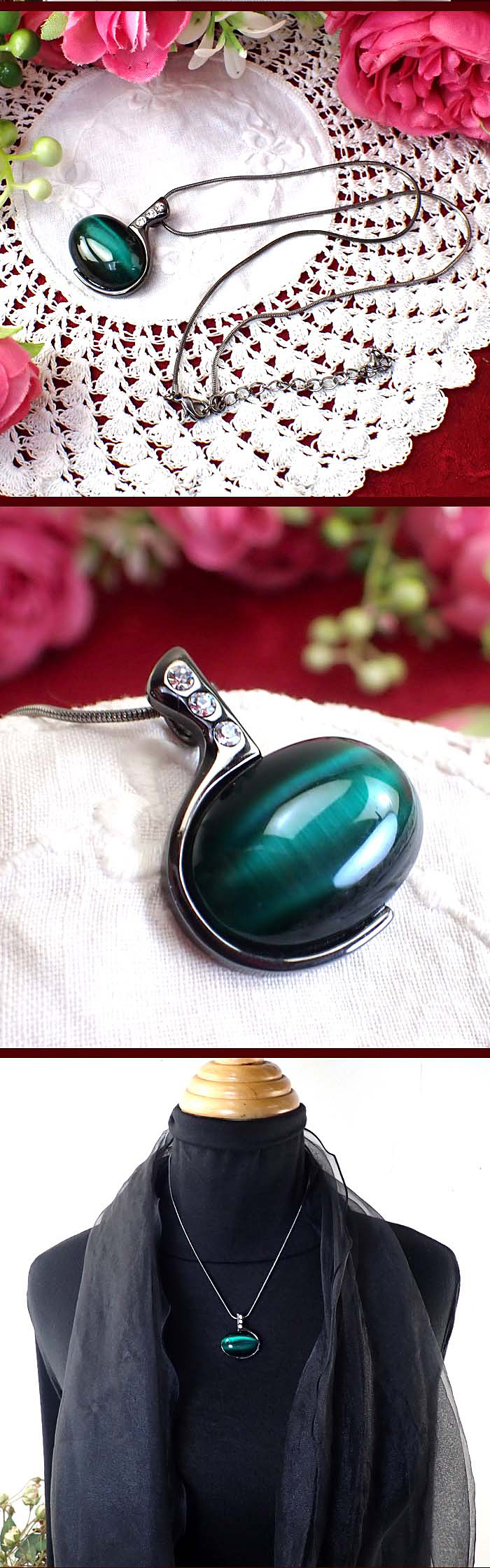 大きなグリーンタイガーズアイの美しい輝きのペンダントトップが素晴らしいですね。