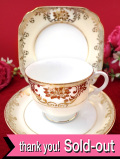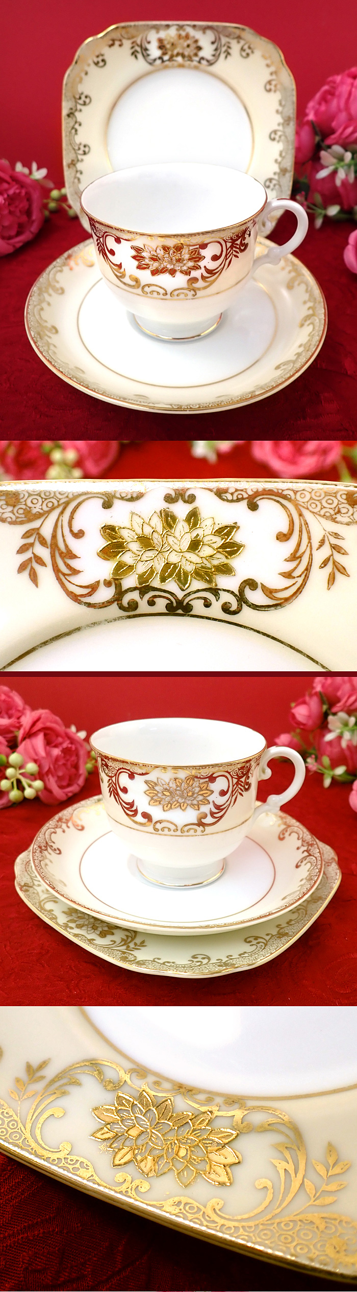 カップにも、ケーキ皿にも、ハンドペイントの金盛りが贅沢に使われています。