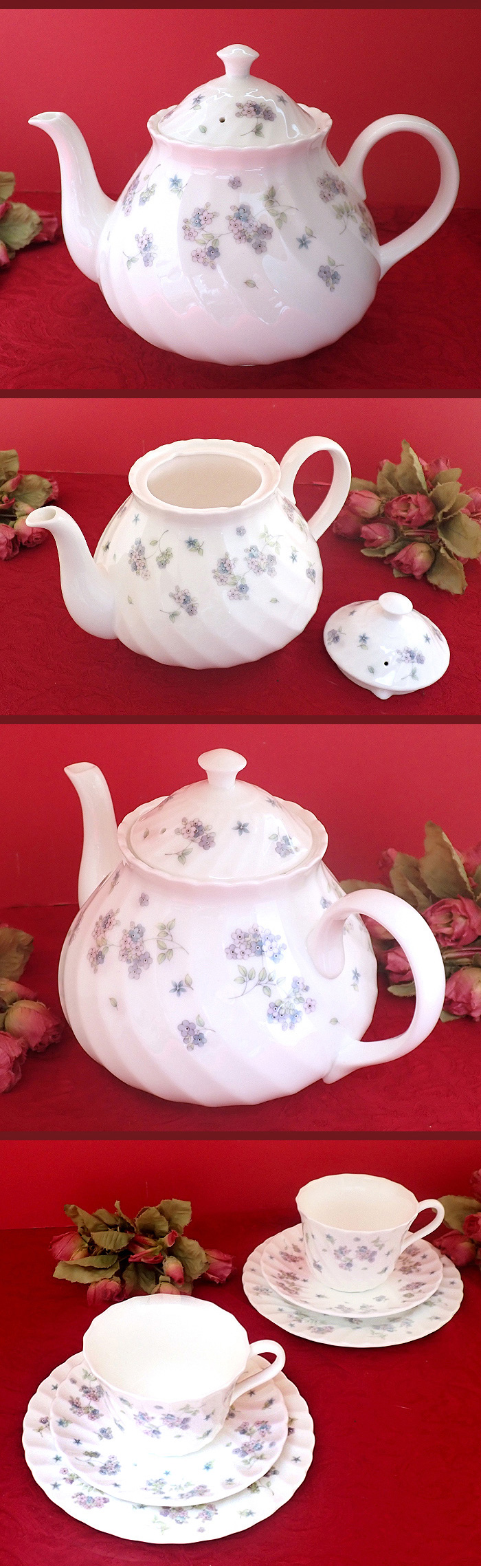 やさしいロマンチックなお花たちのティーフォーツーのセットになります。