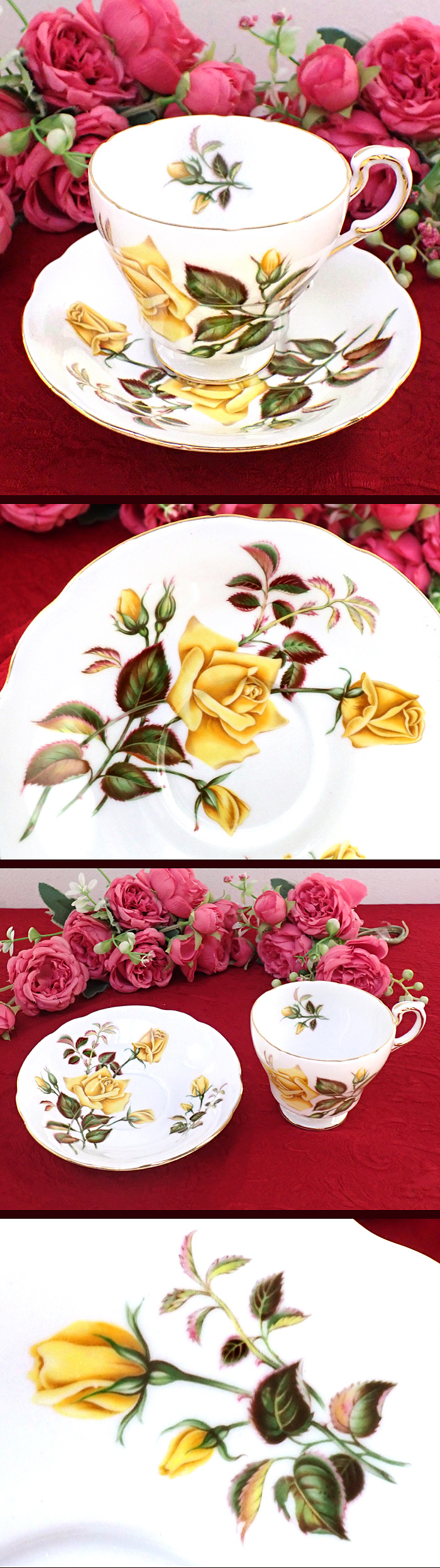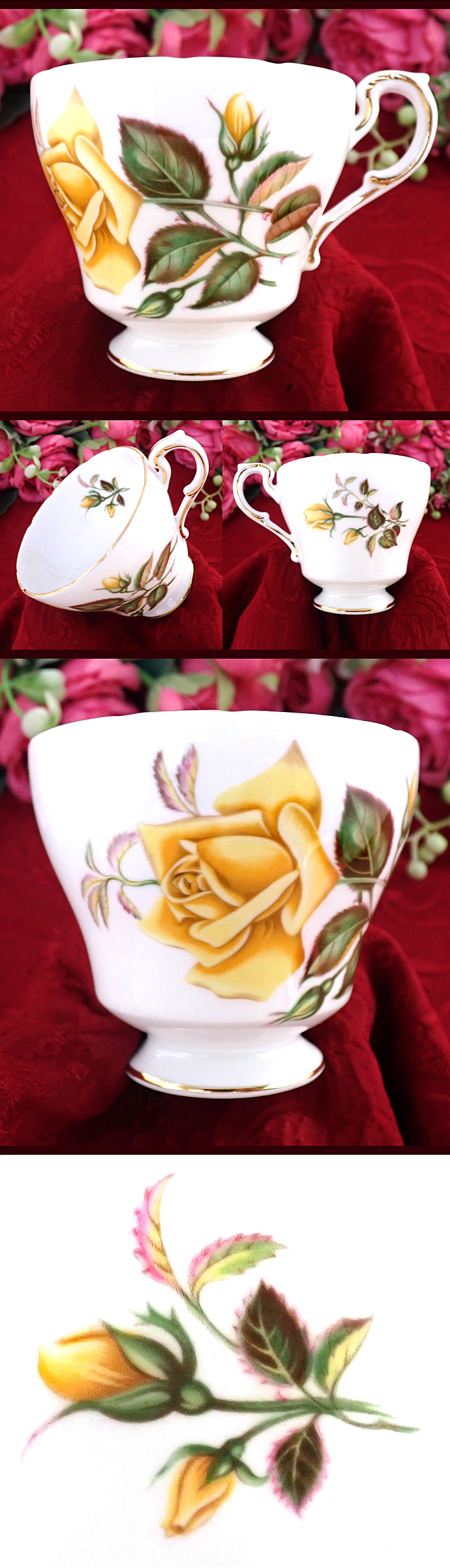 優しくあたたかな英国の黄色いバラのお花たちが描かれたカップ&ソーサーになります。