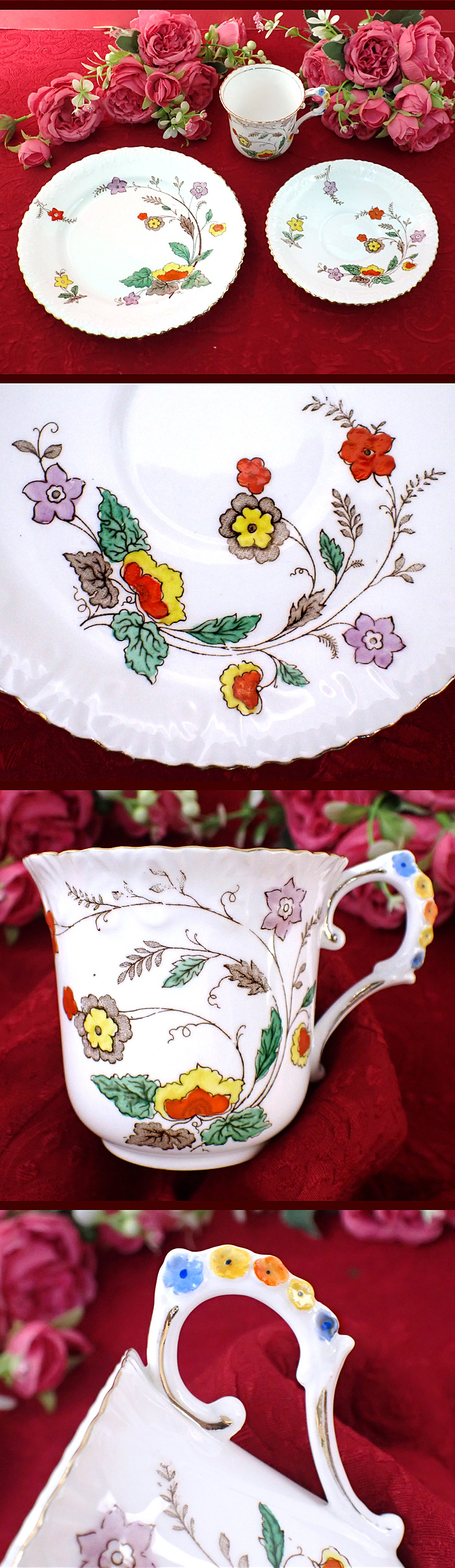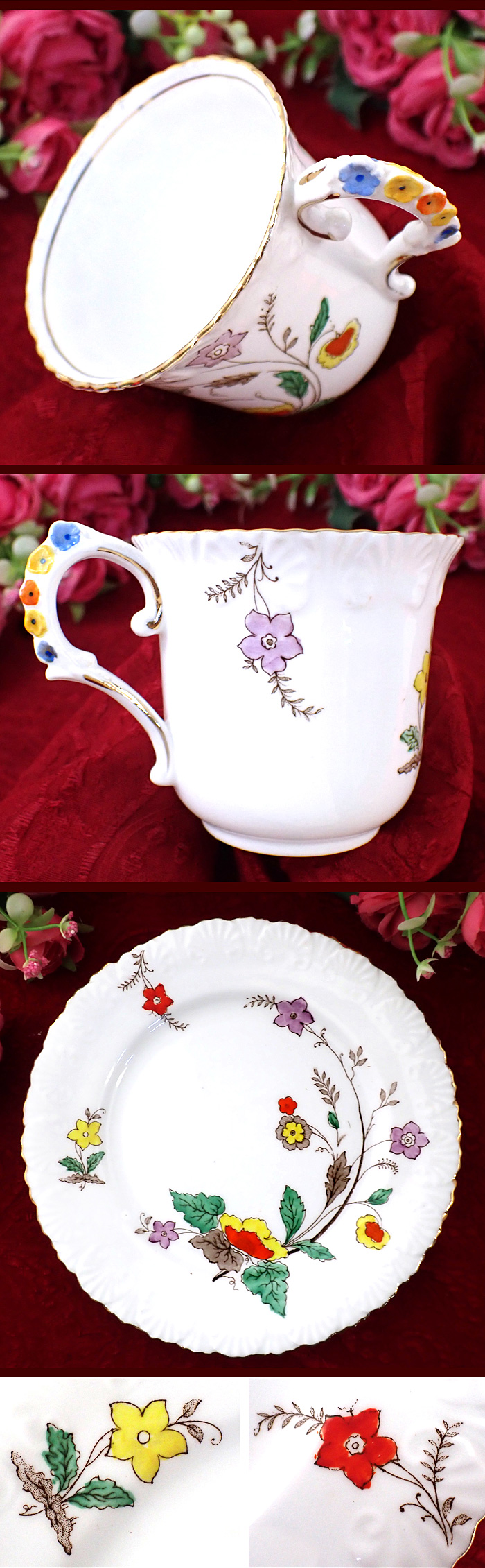 カップやお皿には、英国カントリーサイドの野の花たちがロマンチックに描かれています♪