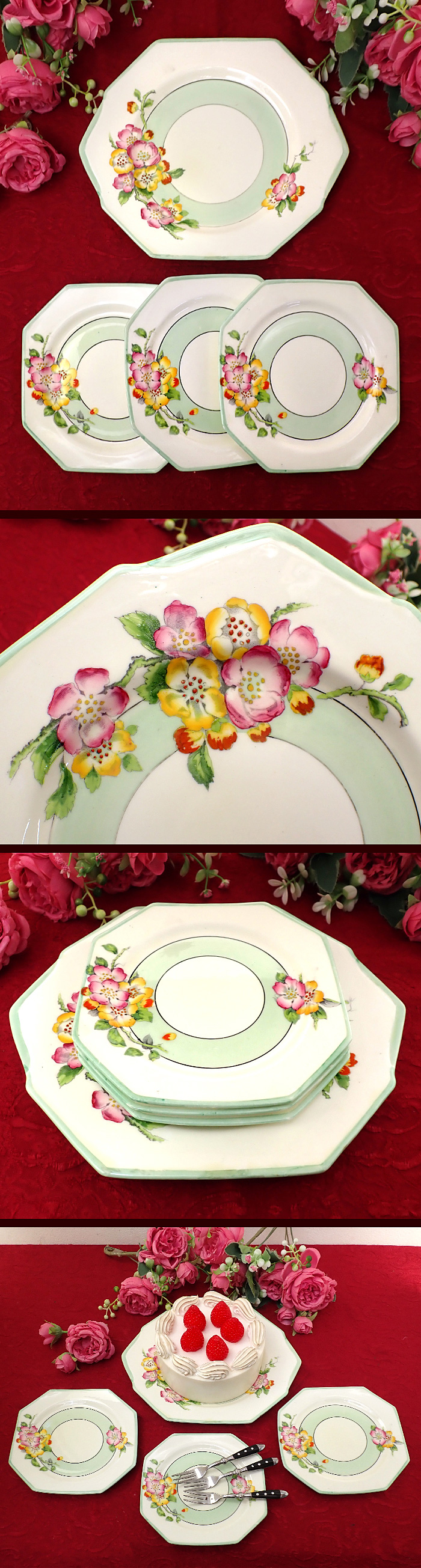 直径16.2cmのケーキ皿が3枚の、合計4枚セットになります。