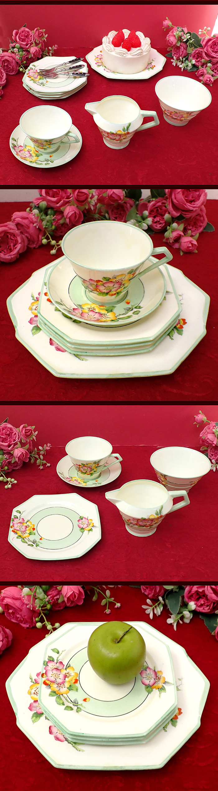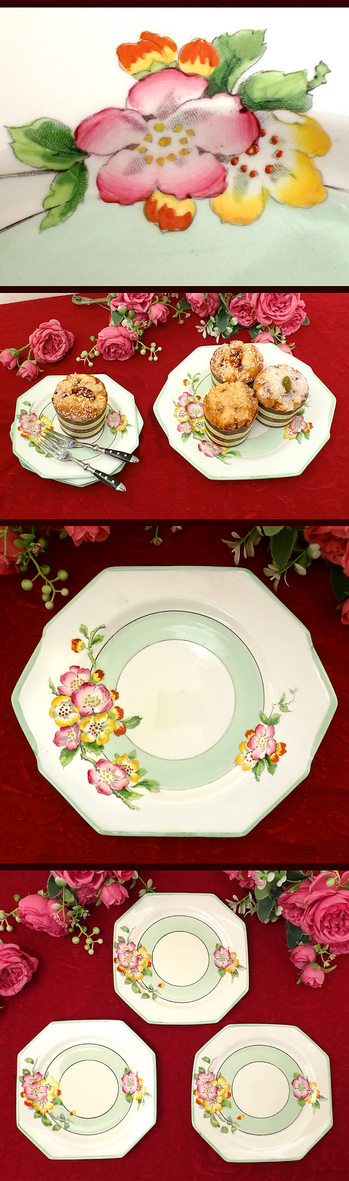 優しくあたたかな英国のオールドローズが描かれた、サンドイッチプレートセットになります。