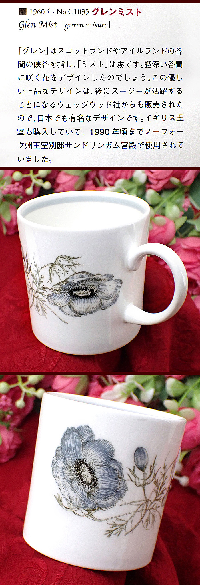 「GLEN MIST」(グレンミスト)の、カンシェイプのカップ&ソーサーに出会いました♪