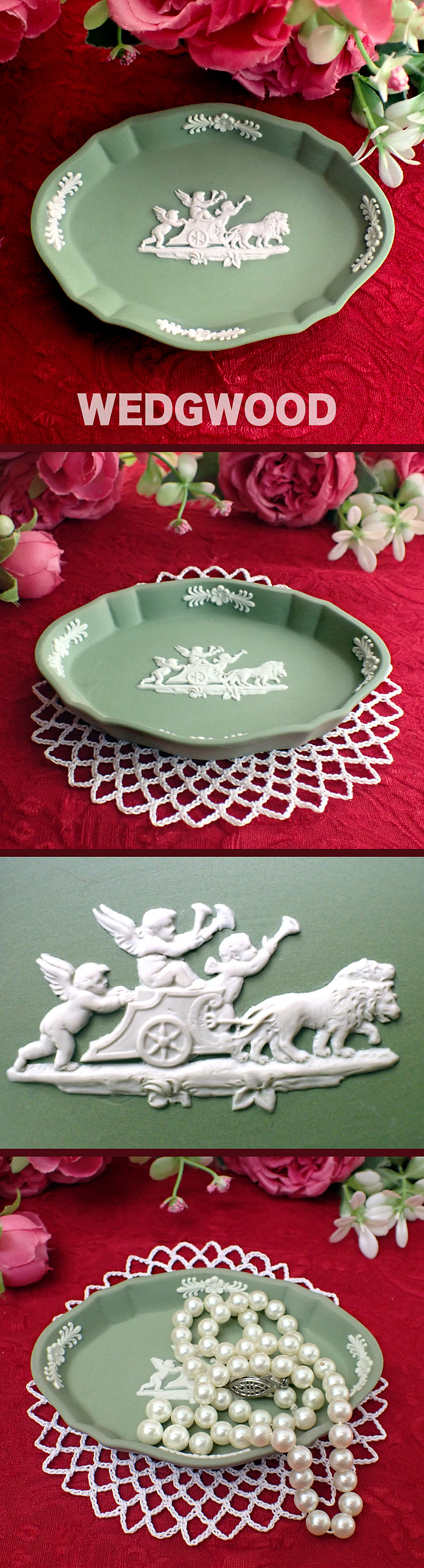 お皿にはライオン馬車に乗る3人の可愛い天使たちが立体的なレリーフで表現されています。