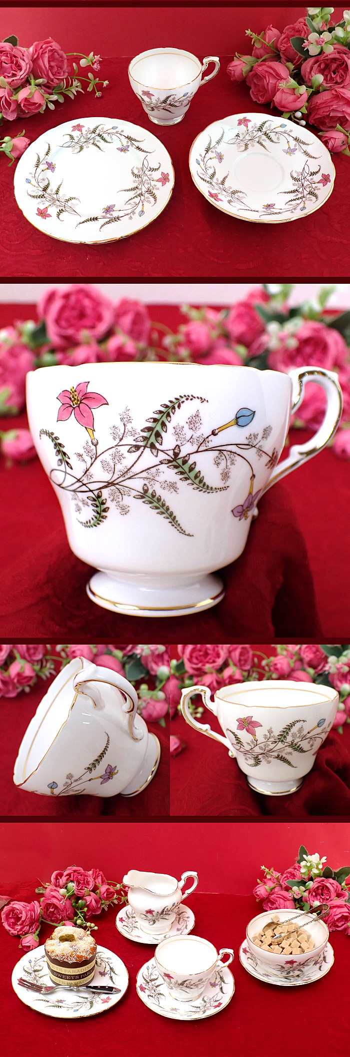 カップ&ソーサーにケーキ皿がついた3点セットのトリオになります。